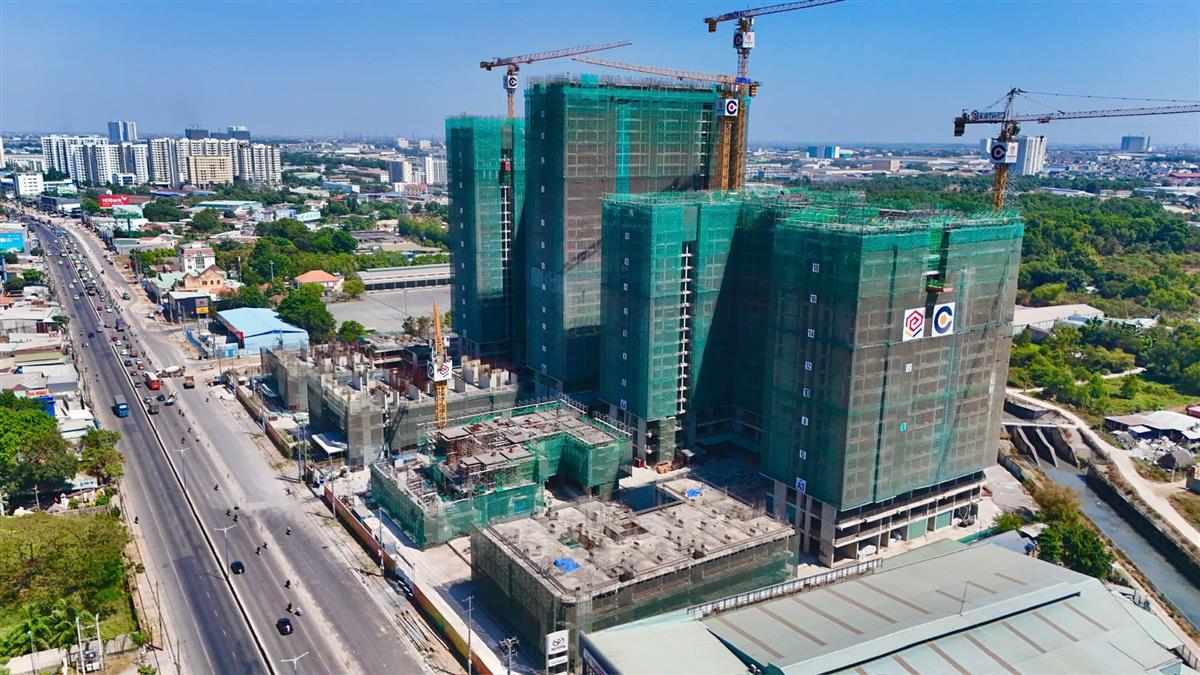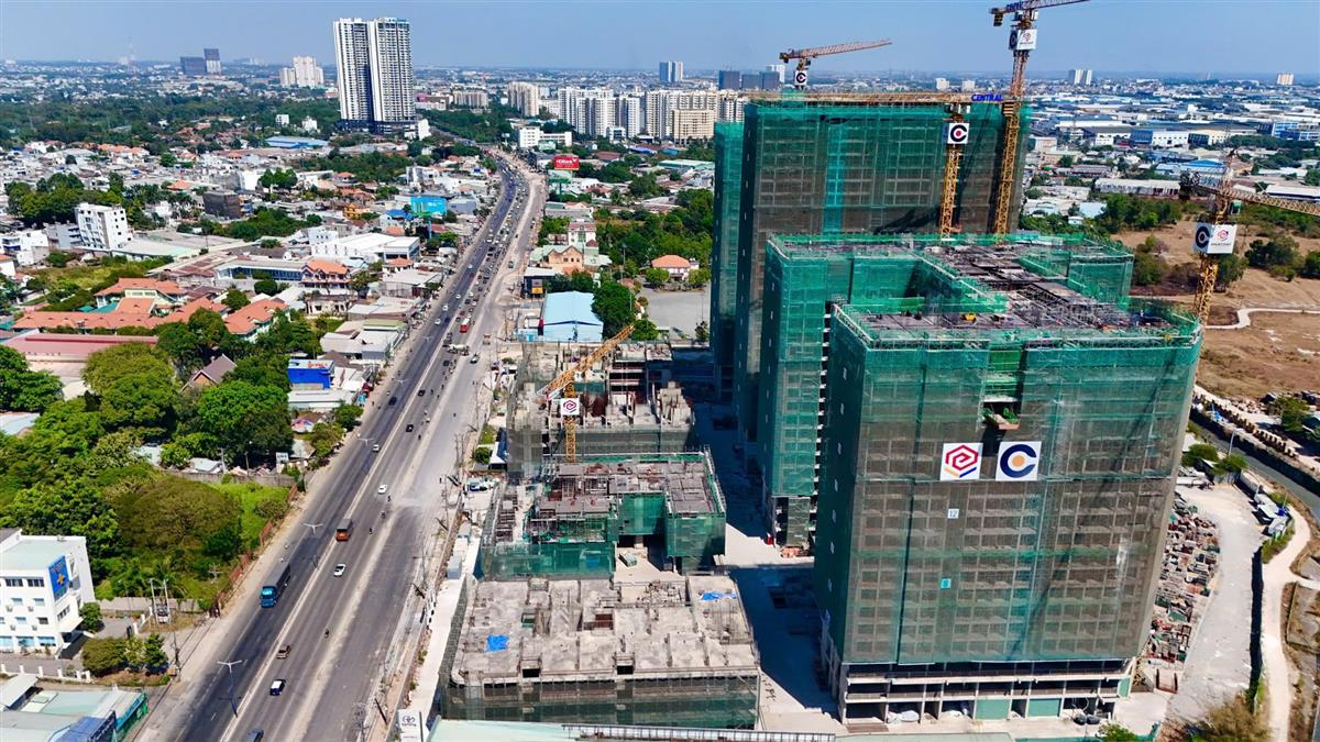 • Khối tháp phía trước (mặt tiền Quốc lộ 13): Các tòa tháp như ZeniaLyra đang dẫn đầu về tiến độ. Sau khi hoàn thiện phần hầm móng kiên cố (3 tầng hầm), các đơn vị thi công đang đẩy nhanh việc đổ bê tông cốt thép các tầng thân. Một số block đã bắt đầu lắp đặt hệ thống lưới bao che và chuẩn bị cho giai đoạn hoàn thiện thô.